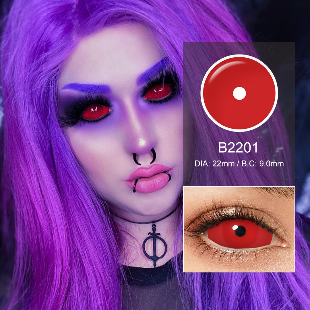 تغطي بالكامل الصلبة بقطر 22 مم وحجم تلميذ أصغر ، فإن جميع عدسات Sclera Red مناسبة جدًا إذا كنت تريد مظهرًا مذهلاً. تصميم منطقة الرؤية المحدودة يجعل تلميلك أصغر لتسليط الضوء على عينيك الحمراء.