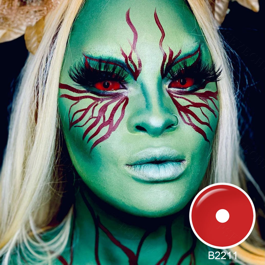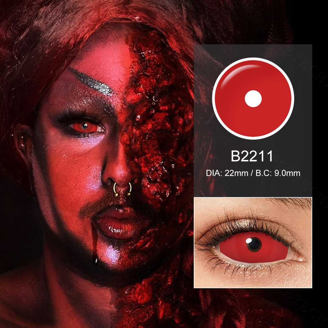 تغطي تمامًا الصلبة بقطر 22 مم ، تكون عدسات الصلبة الحمراء مناسبة جدًا إذا كنت تريد مظهرًا مذهلاً أو أن تصبح شخصية تتمتع بعيون حمراء. مثالي لأزياء الهالوين ، أو تأثيري ، أو لمجرد الاستمتاع.