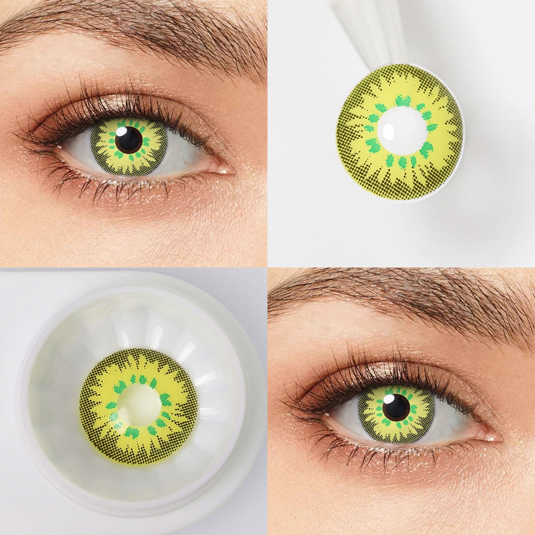 Light up your look with Sweet Candy Yellow Eyes. These vibrant lenses are sure to grab attention with their rich yellow hue and unique sparkle. Stunning green accents make your gaze shine, and the comfortable fit ensures a perfect fit and all-day wear. Get ready to turn heads with Sweet Candy Yellow Eyes!