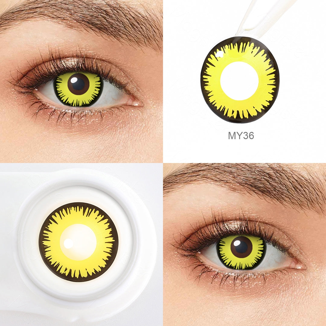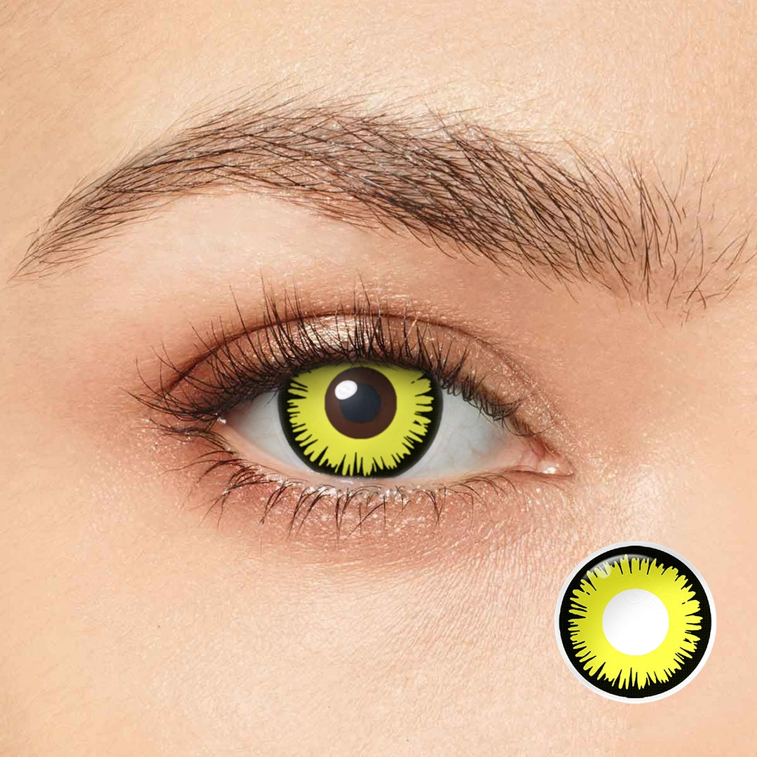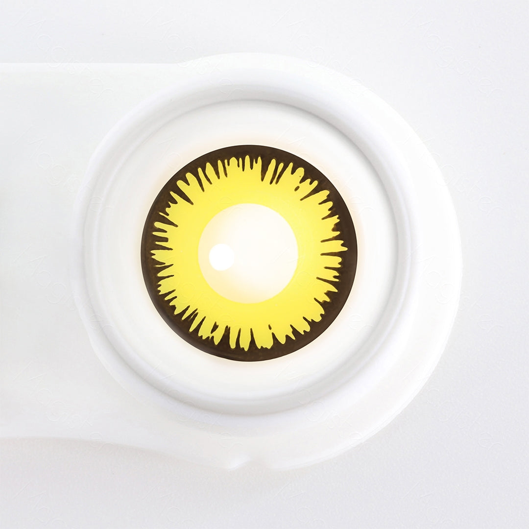 Experience a celestial spectacle with our solar eclipse radiance contacts. These lenses capture the magnificence of a solar eclipse, featuring a radiant yellow pattern encased in a jagged black limbal rim. Ideal for celestial themed costumes, Halloween parties, or if you just love astronomy. Beyond creating visually striking effects, these contacts also prioritize comfort and vision clarity. Let your eyes mirror the sky's most mesmerizing event with the solar eclipse style.