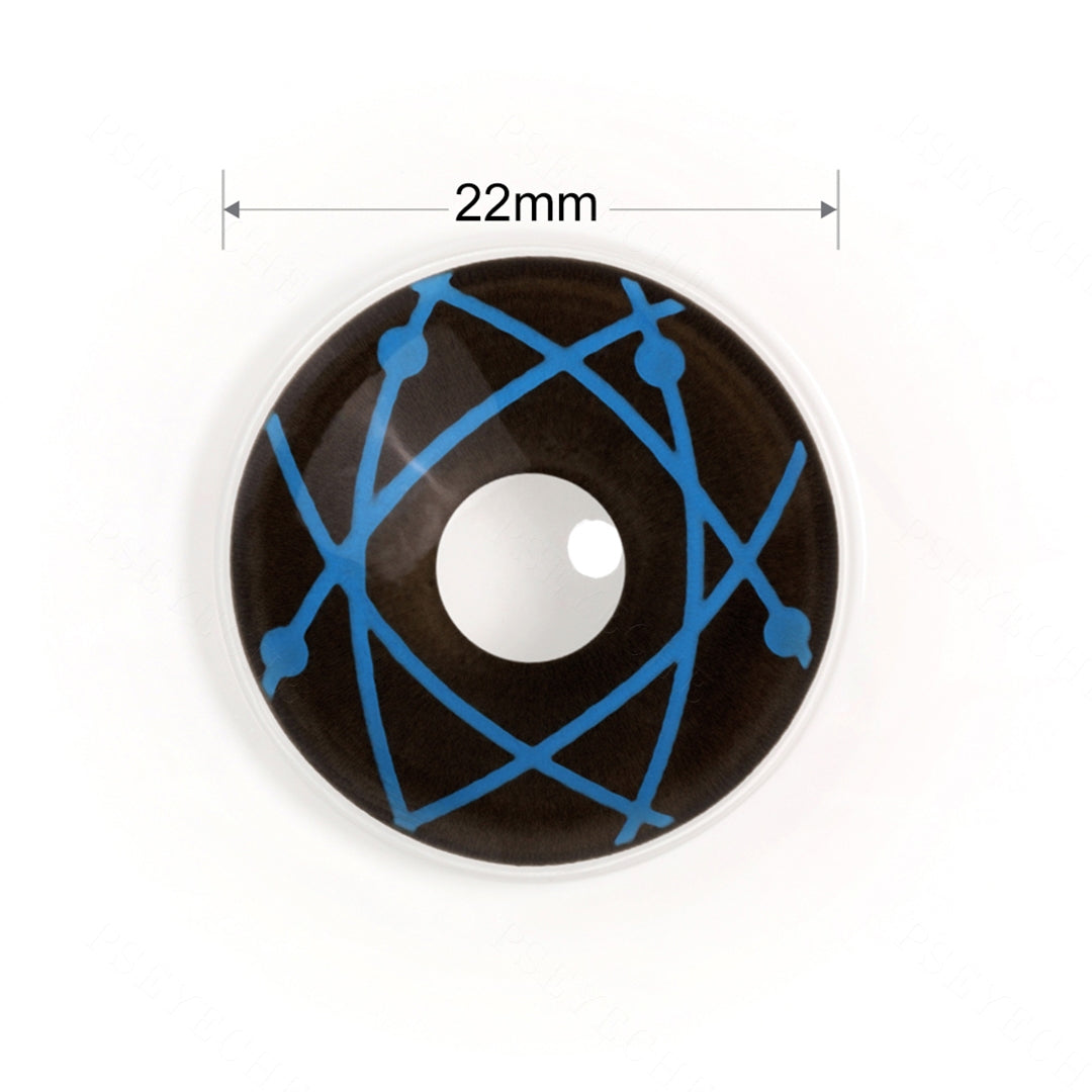 Das Muster sieht aus wie Kometen mit blauen Trails, die durch den schwarzen Planeten laufen und diesen einzigartigen und erstaunlichen Look in Ihre Augen bringen. Diese Objektive sind Ihre Sklera mit einem Durchmesser von 22 mm vollständig abzudecken.