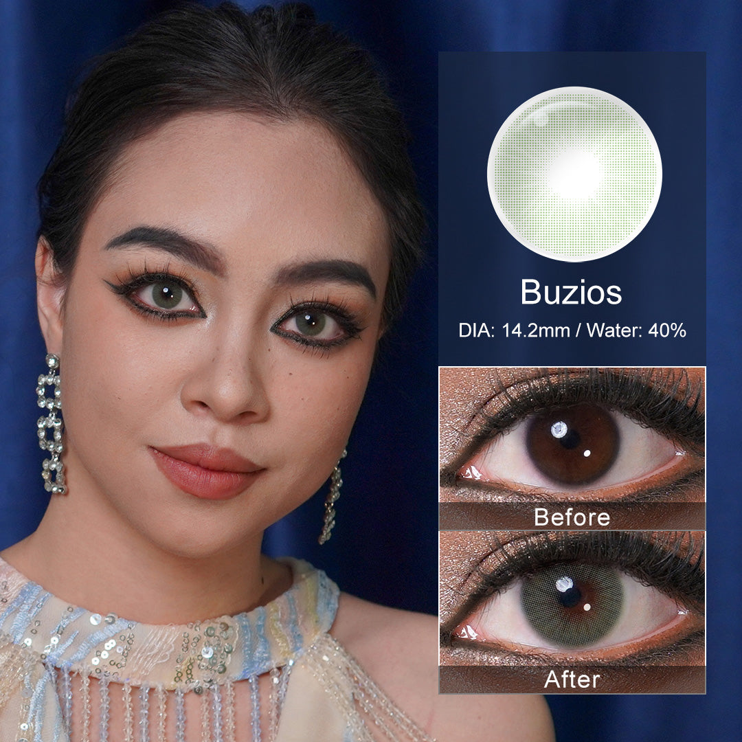 Rio Buzios Green -Kontakte bringen Ihnen ein komfortables Tragenerlebnis. Das einzigartige Merkmal von Buzios besteht darin, dass die Kontakte ein spezielles Muster erstellen, indem Sie sich mit Ihren Iris mischen. Die tief reichhaltige grüne Farbe macht Ihre Augen auch tiefer und natürlicher als andere grüne Objektive.