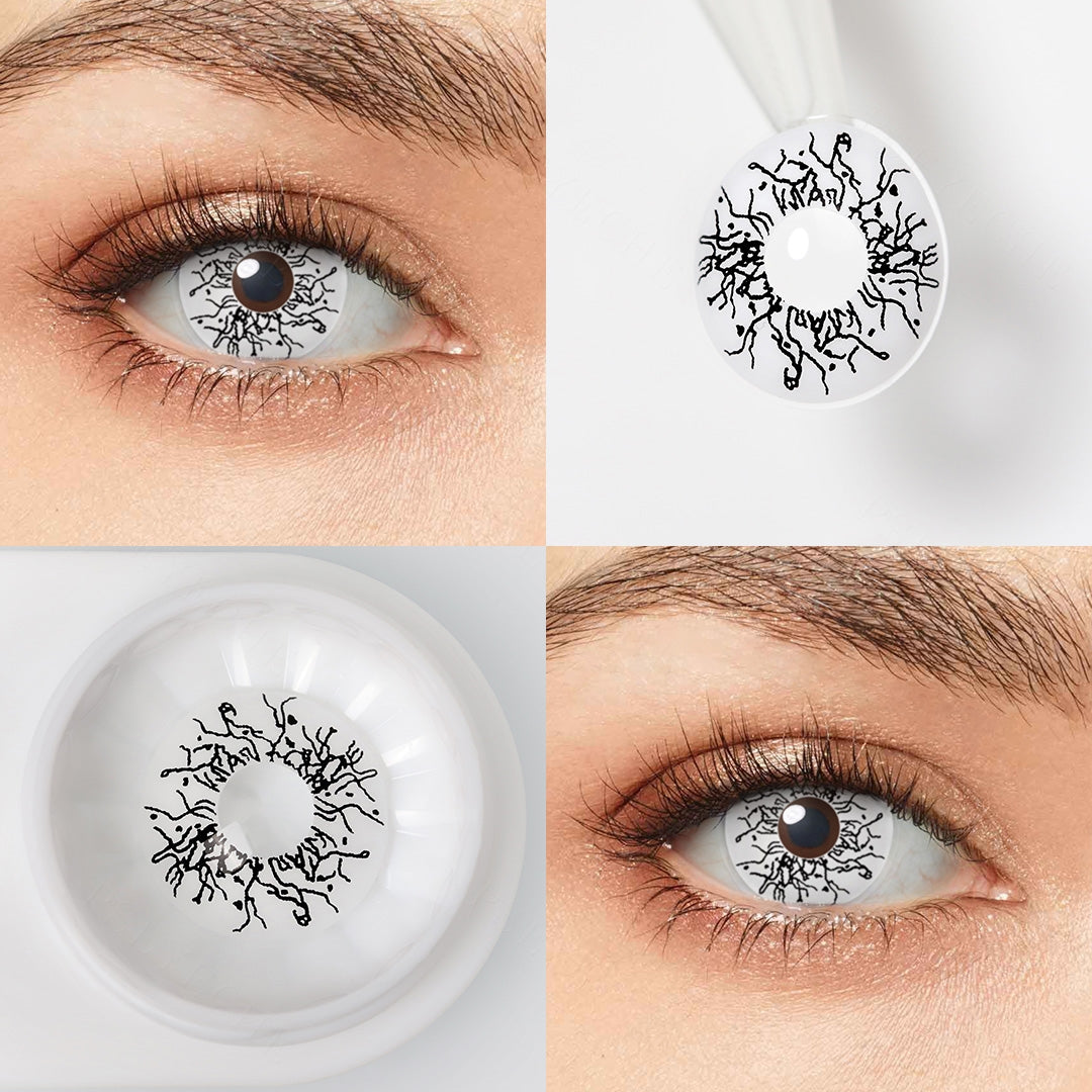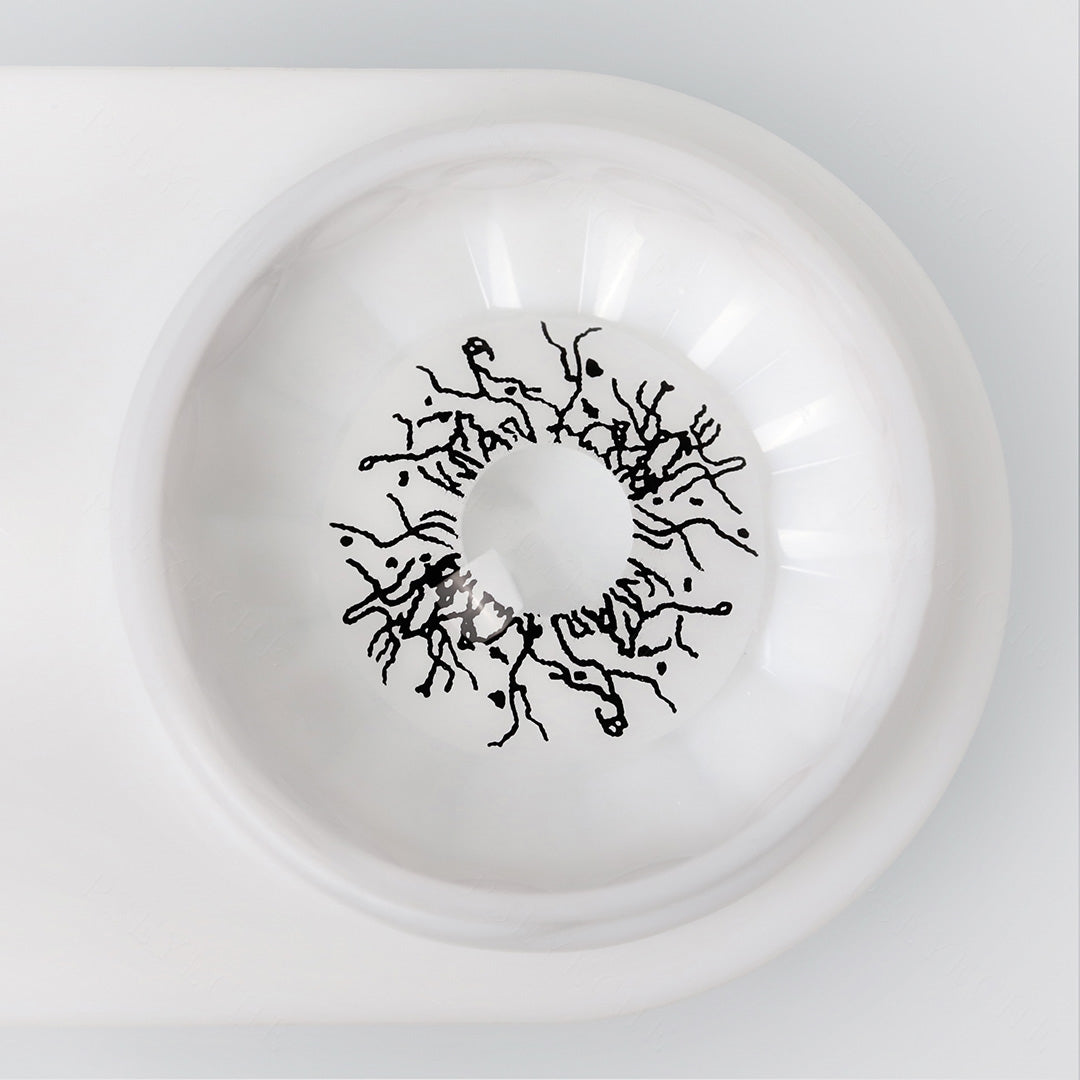 Transform your gaze with these intriguing iron nematode-inspired lenses! Set against a brilliant white base, the labyrinth of black etchings invokes the enigmatic and the edgy. Perfect for anyone looking to add mystique to their aesthetic or an authentic touch to a costume. Embrace the abstract and invite others to look again with these unique designs.