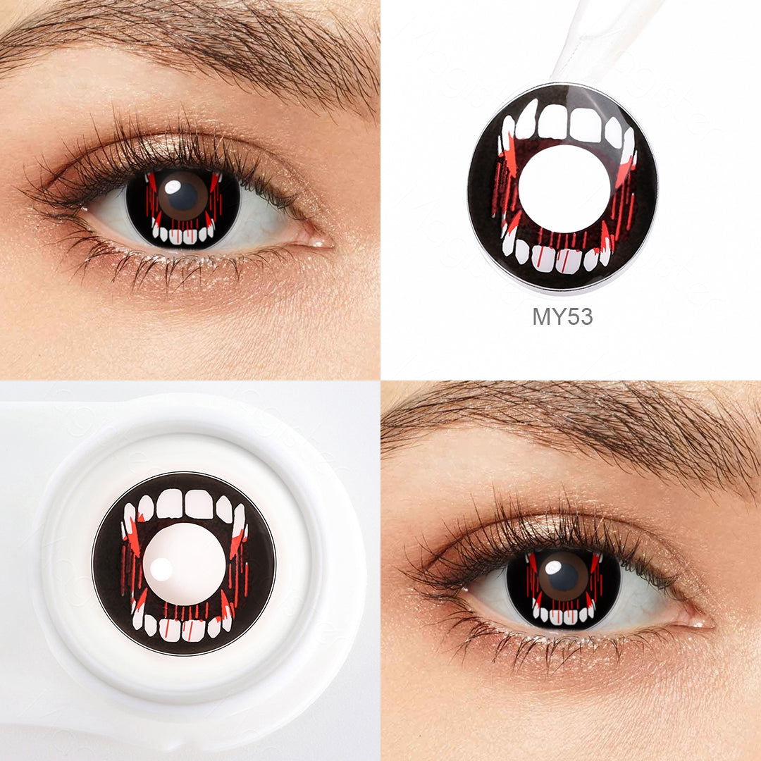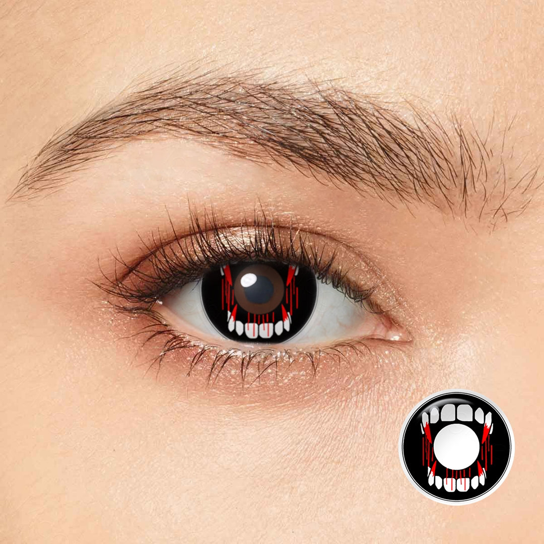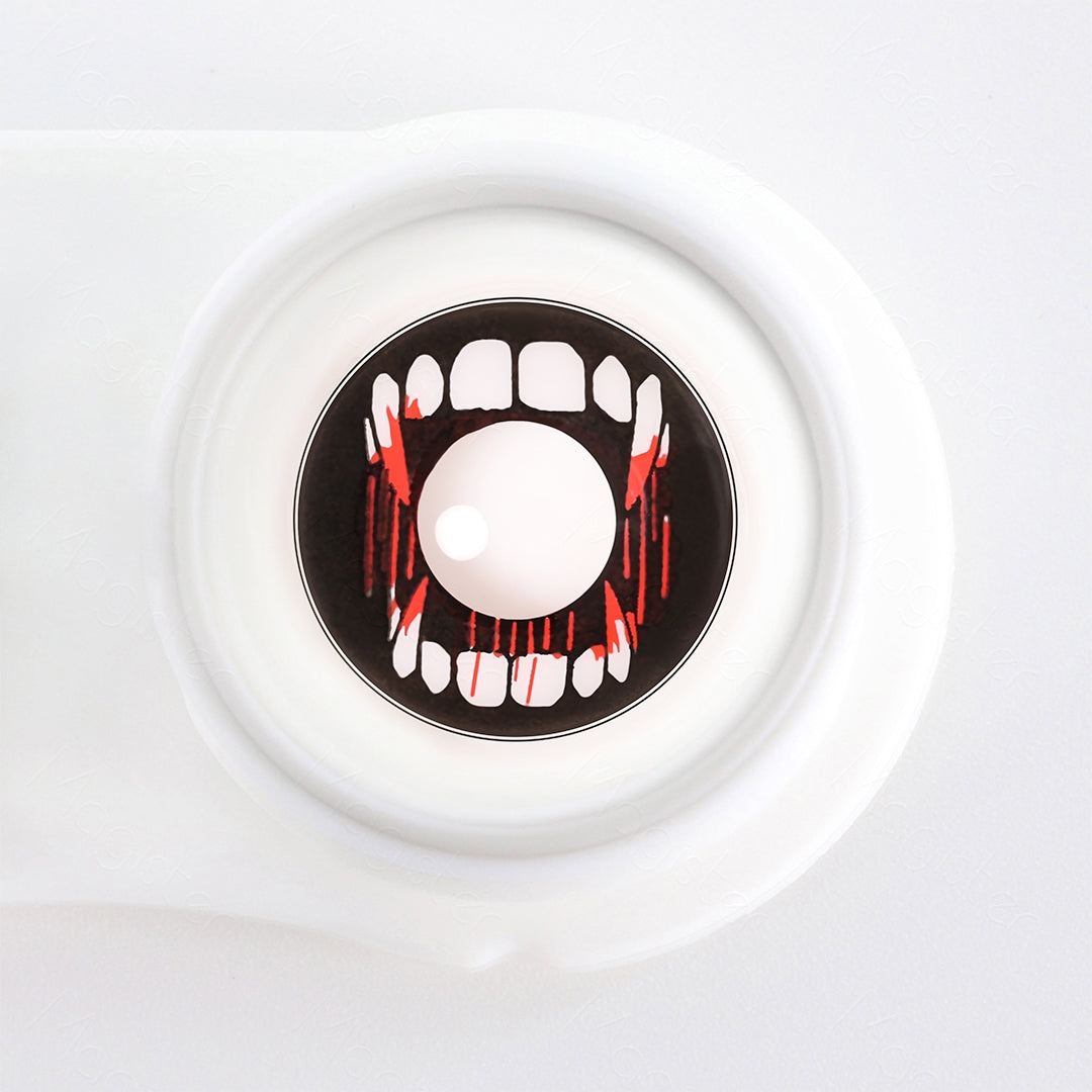 Dare to bask in the moonlit mystique with our bloody fangs costume contacts. Inspired by the blood-soaked fangs of nocturnal predators, these lenses boast a stunningly sharp edge. Marrying high-intensity drama with wearable comfort, these lenses are the ideal accessory for any vampire fantasy or horror-themed occasion. Engage in absolute transformation while never compromising eye health. Dip into the supernatural with the captivating allure of crimson fangs costume Contacts.