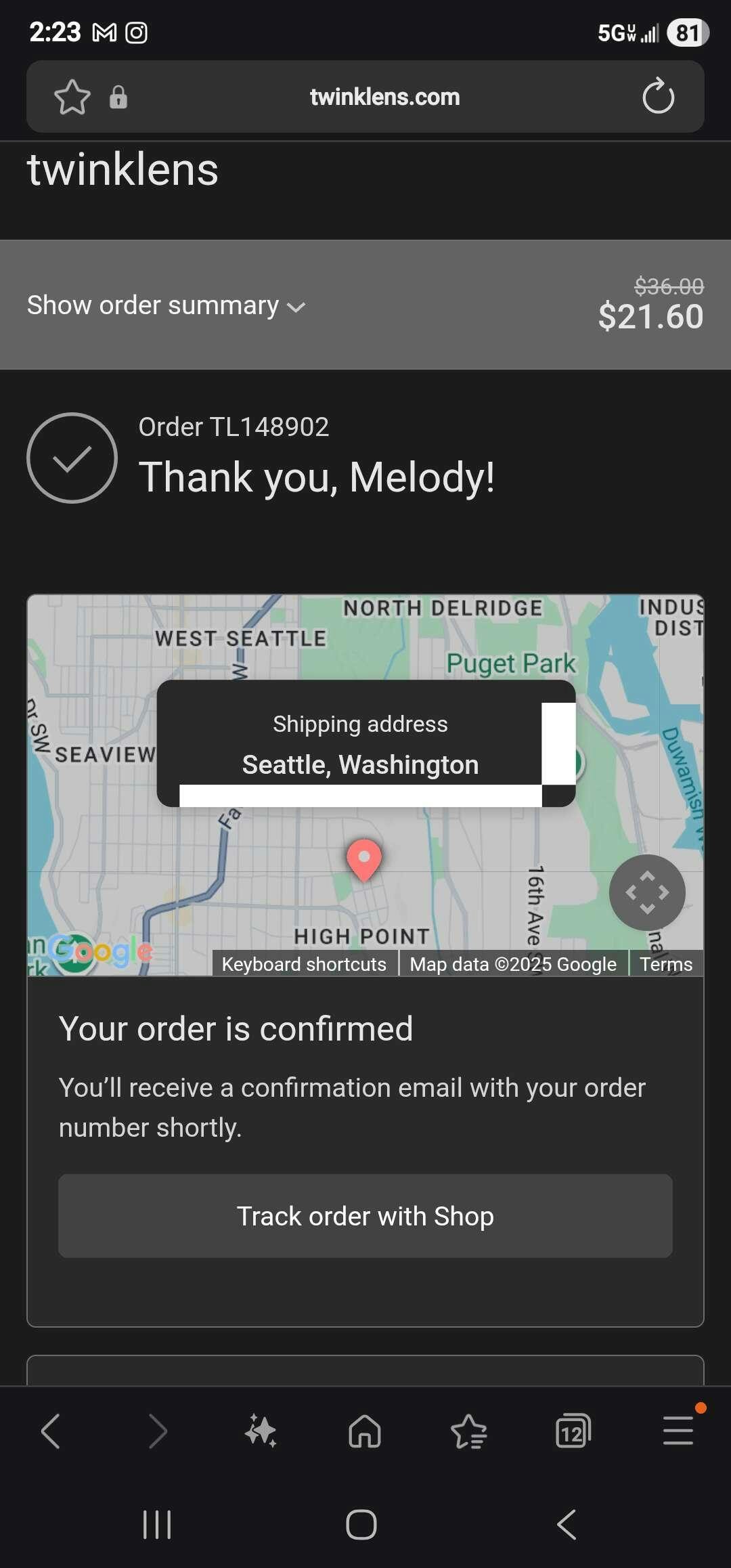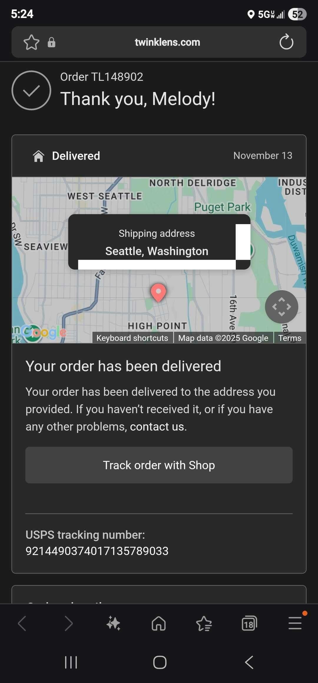 twinklens ships worldwide and is working with multiple international and local carriers, some of whose systems have not been integrated with the Shop app. That said, please always use our Order Tracking tool to check your shipment status. Simply input the tracking number you receive from us and hit the orange Track button, you are then supposed to see the live status.