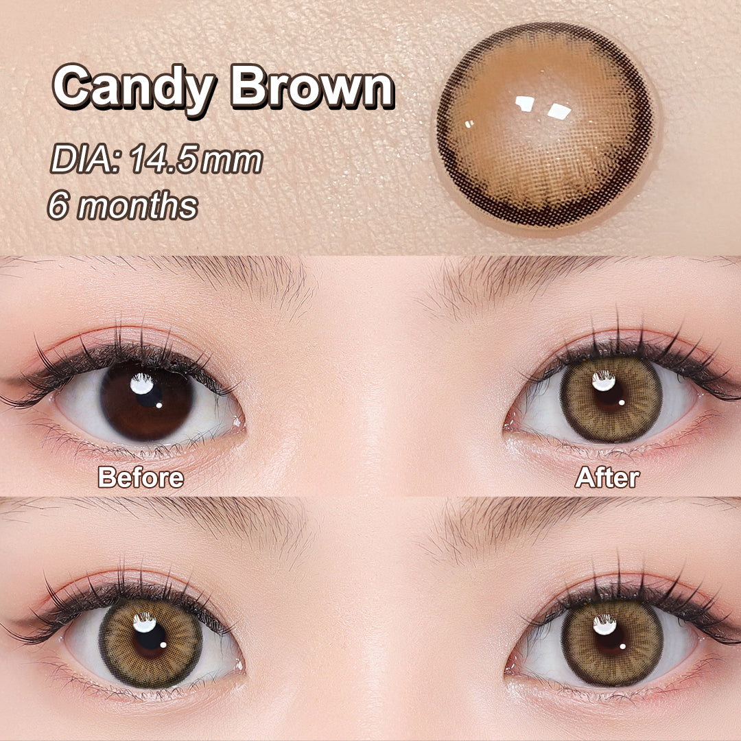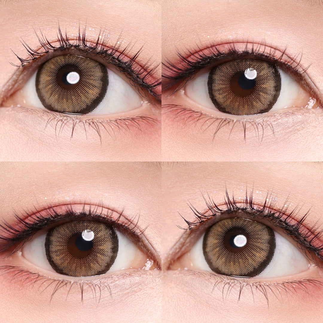 The Diamond Candy Brown Eyes play a harmonious movement in your eyes. Feature a vivid iris-simulating design and the dark outer ring with amber-brown coating in the middle, it can really brighten up your iris both for dark eyes and bright eyes. These lenses allow your eyes to look like amber glittering in the sun.