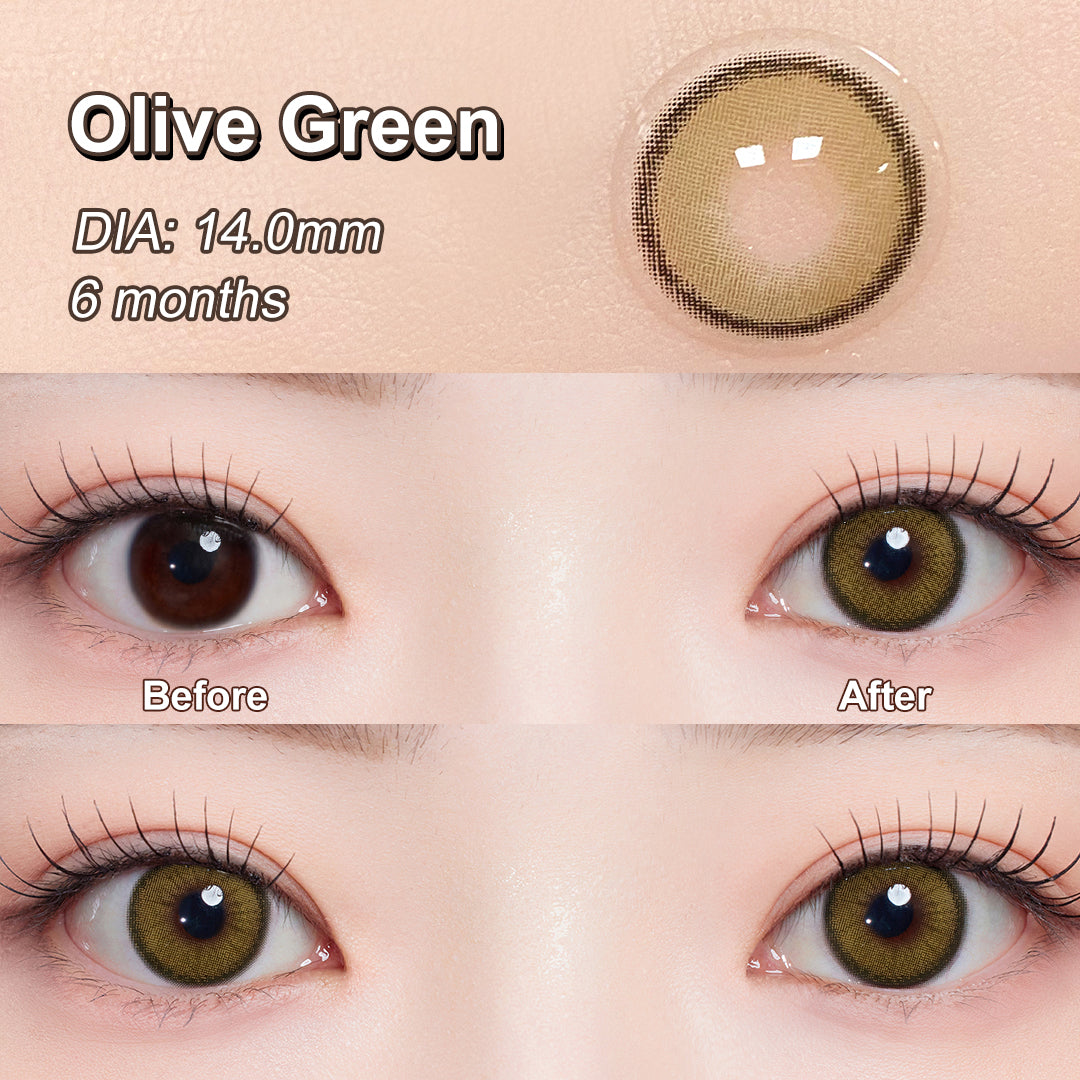 You will not be disappointed when you wear the Roze Olive Green contact lenses. The tinted green around the pupil naturally blends with your original eye color to bring you an amazing new look.