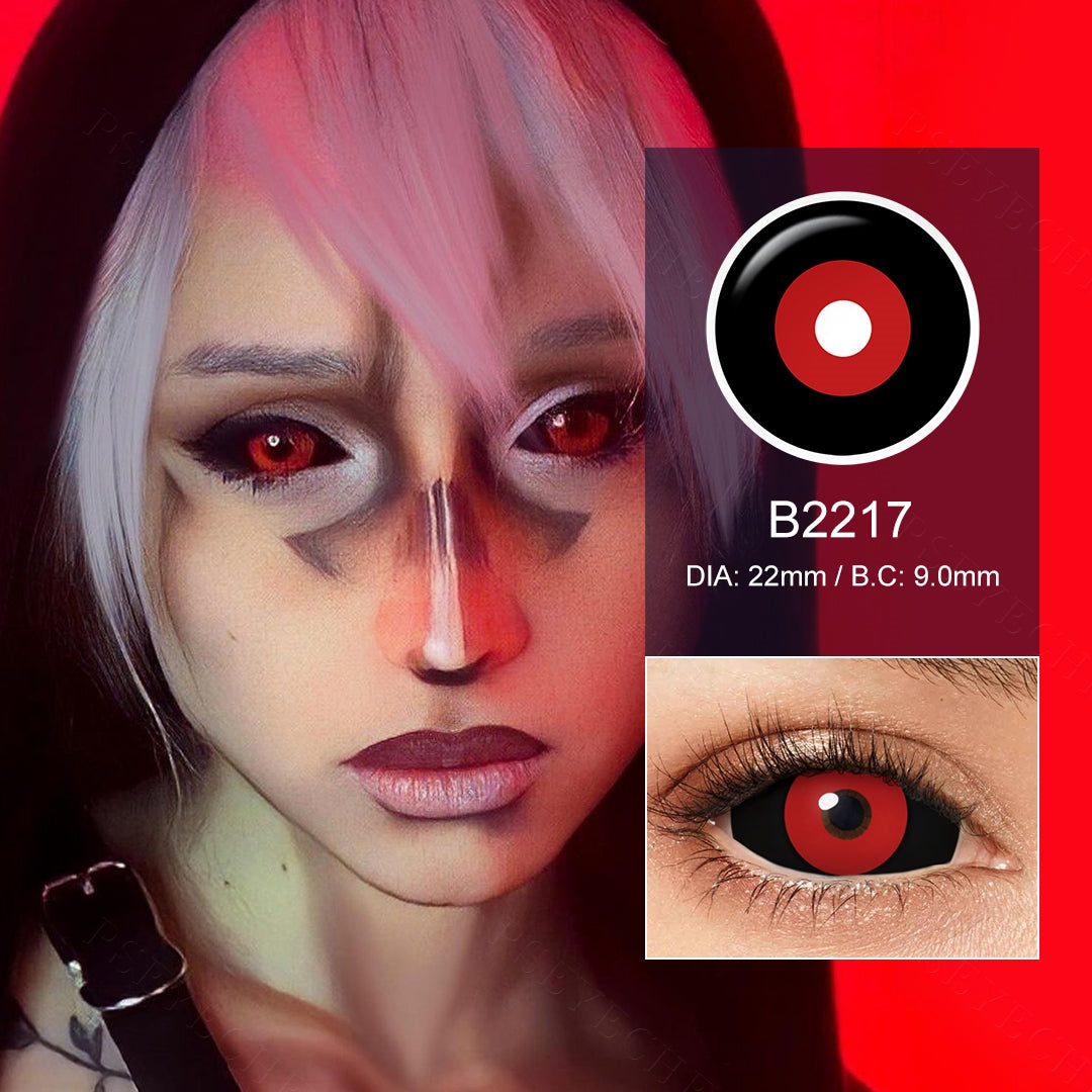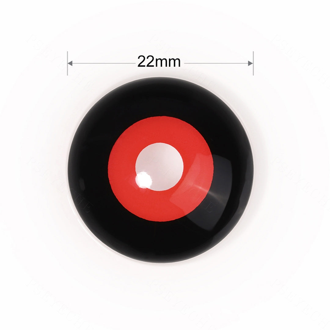 The deep red color always represents horror. Inspired by the Jigsaw Killer, these lenses cover your eyes totally with black and deep red, making them suitable for some great terrifying cosplay. With a diameter of 22mm, these lenses will entirely cover your sclera.