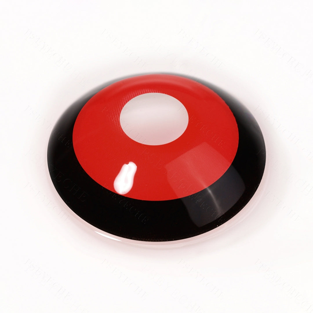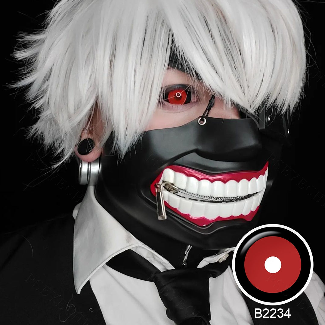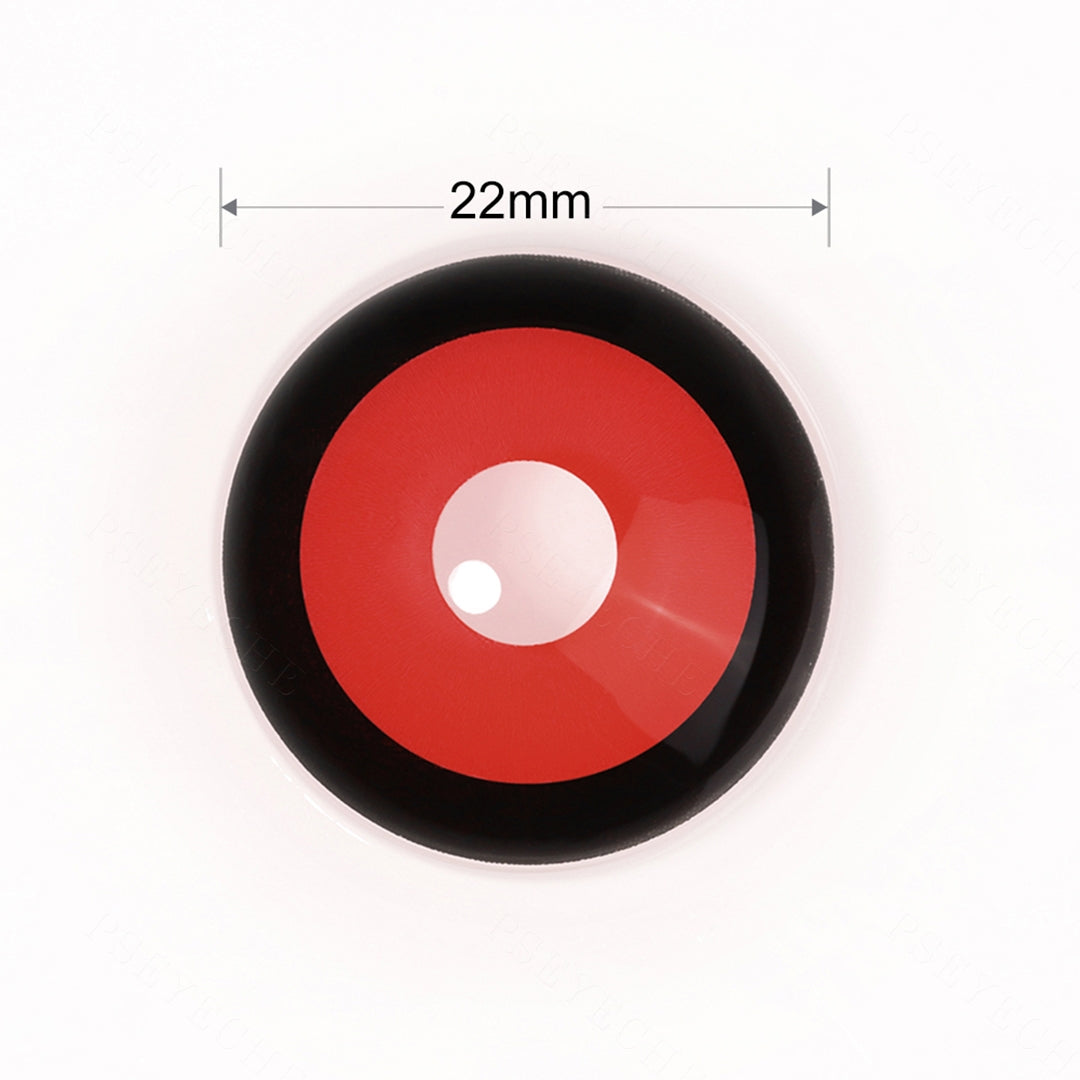 Usando uma área vermelha maior que se estende a uma fina circunferência preta, essas lentes são adequadas para cosplay de anime como Tóquio Ghoul. Eles dão uma percepção de uma forma mais "avançada" da transformação de Ghoul. Com oDiâmetro de 22 mm, essas lentes cobrirão completamente sua esclera.