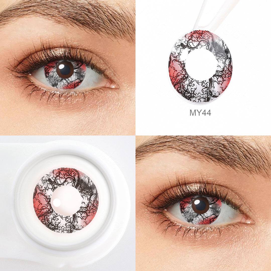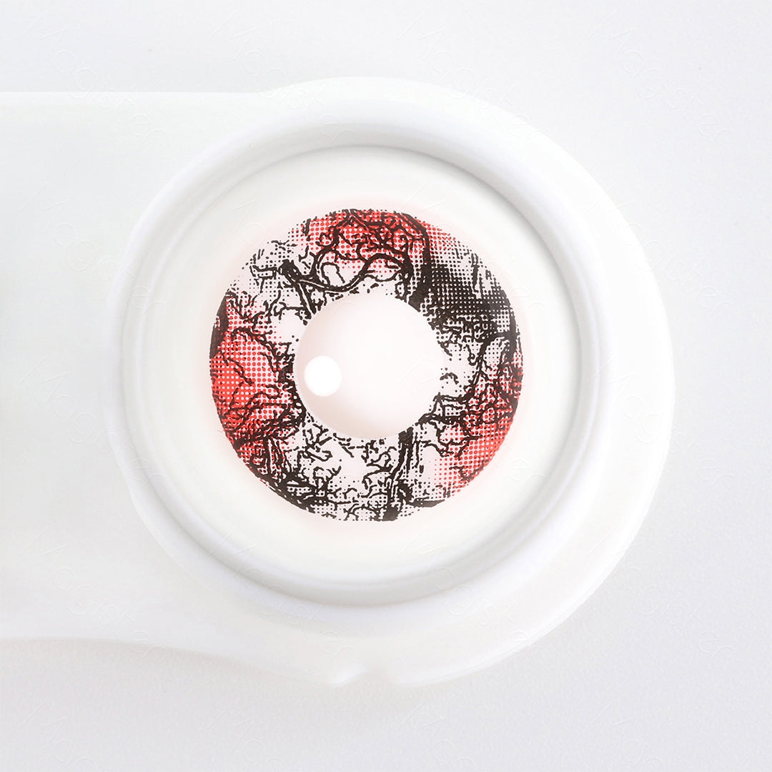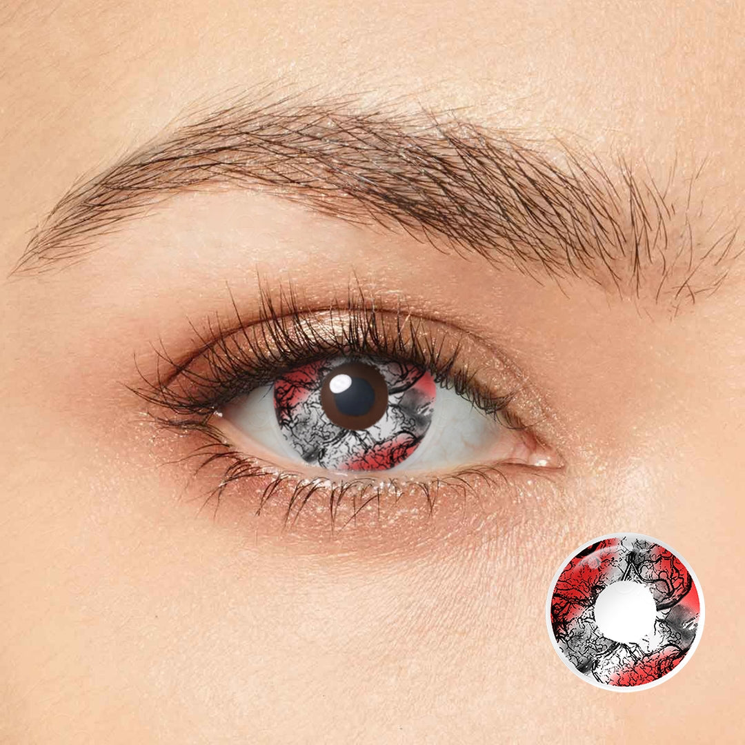 Complete your haunting look with the blood soaked veinwear costume contacts. They intricately blend the eerie pattern of black veins with a blood-soaked design, bringing an uncanny realism to your costume. Crafted for maximum comfort and superior clarity, these lenses truly transform your eyes into windows to the supernatural. Ideal for Halloween, costume parties, or any horror-themed event. Elevate your costume game with this fearsome, yet surprisingly comfortable, eyewear.
