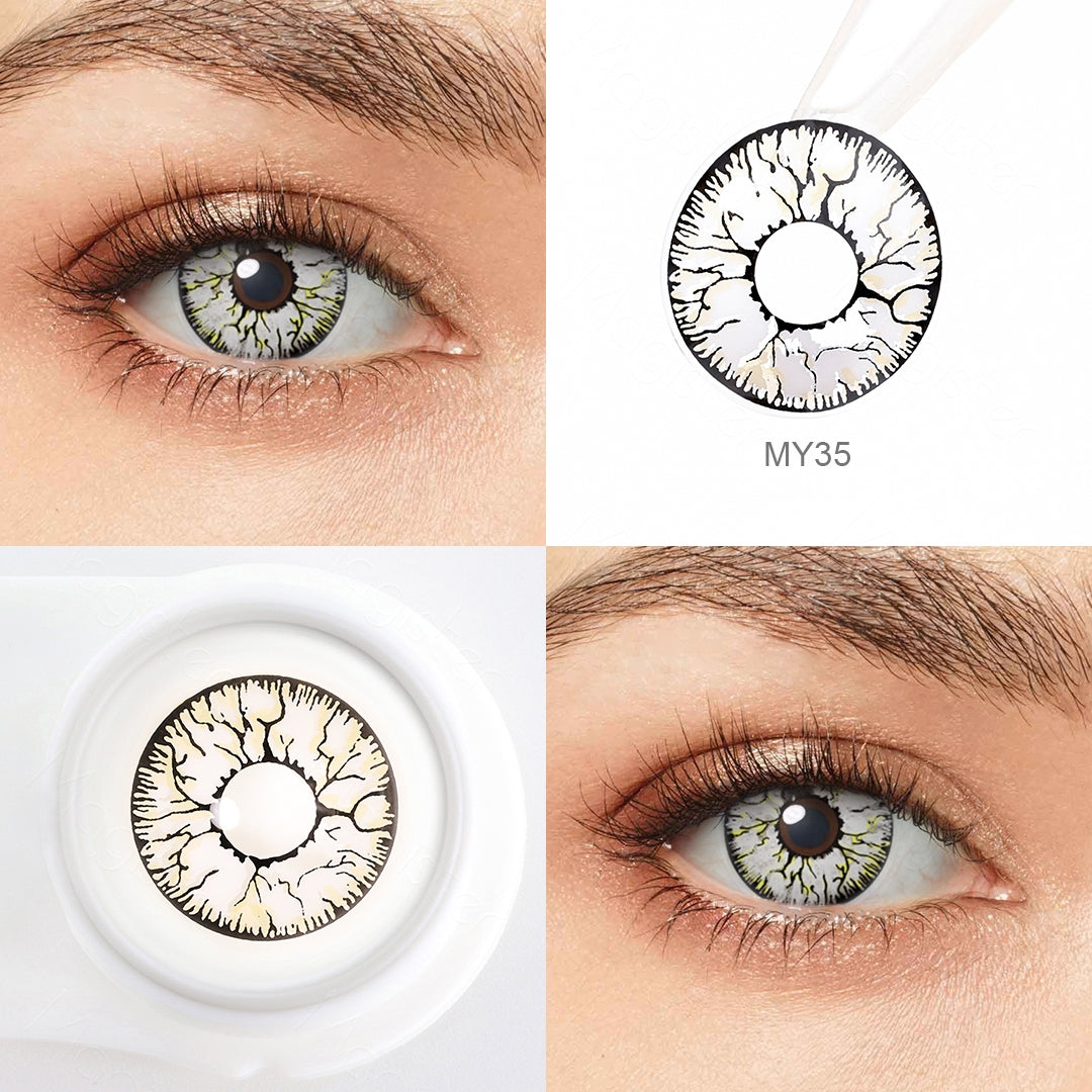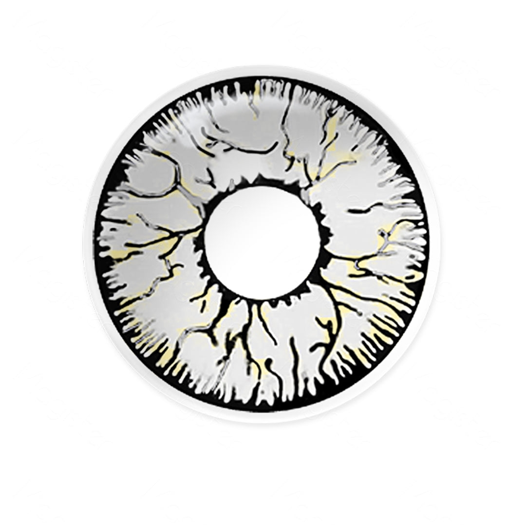 Make a powerful statement with these cracking white costume contacts. These lenses feature a ghostly white base webbed with mysterious black cracks, offering a captivatingly stark contrast that is both haunting and attractive. Ideal for Halloween, costume parties, or when you're looking to make an unforgettable impression. While pushing the boundaries of style, these contacts also provide comfort and optimal vision clarity.