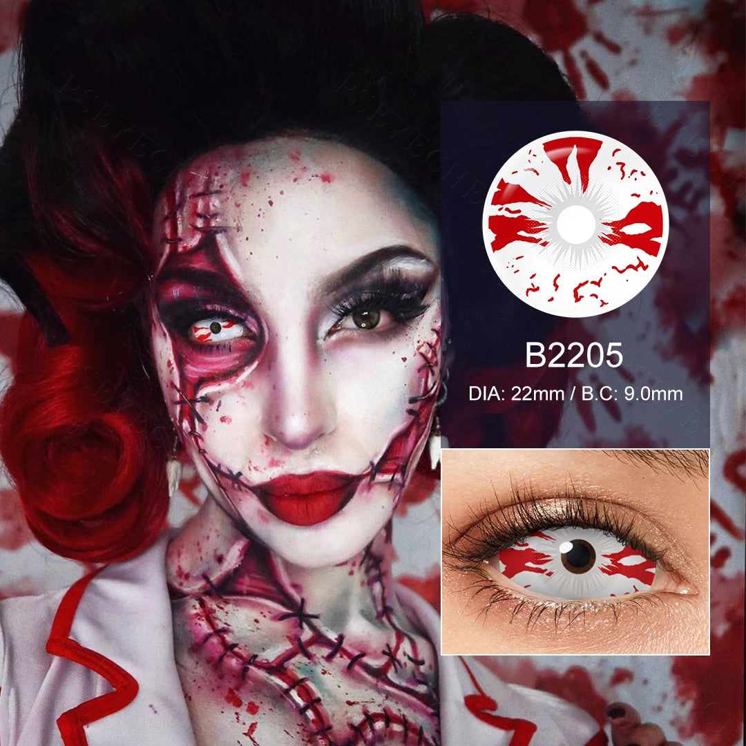 Com os padrões sanguíneos decoram com a esclera, o sangue manchado cria um olhar surpreendente que é adequado para aqueles que querem desempenhar um papel de demônio ou zumbi. Experimente os sangue manchados para se divertir!