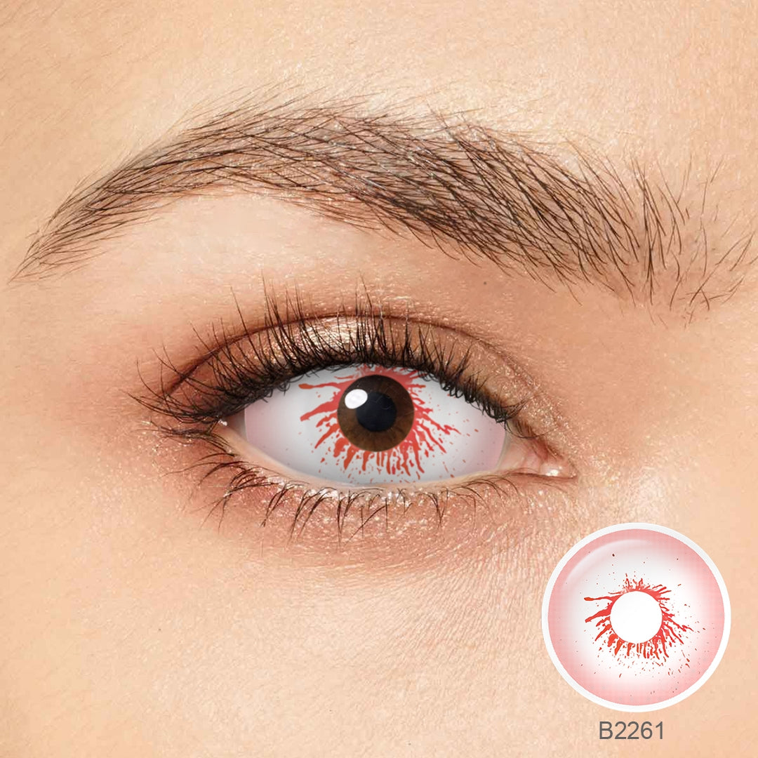 O padrão de manchas de sangue espalhado torna essas lentes adequadas para você desempenhar um papel como vampiro, zumbi, demônio e qualquer personagem com olhos assustadores de sangue. Eles são tão ideais para a festa de fantasia e fantasia de Halloween. Pegue o Lentes rosa zumbi esclera e mude sua aparência!