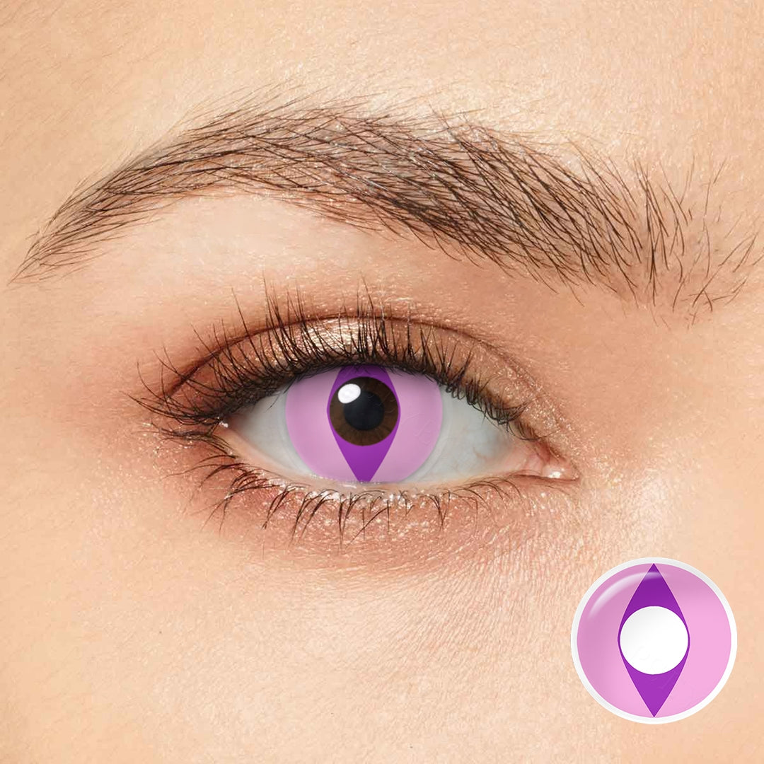 Projeto de lentes de contato ocular do gato violeta com fundo roxo leve e um aluno vertical violeta clássico. O olho de gato violeta parece elegante e um pouco escuro, fazendo as pessoas adorarem e pavoram. O design da lente pode permitir que você rompe o estilo anterior, o que é incrível!